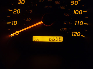 I knew this moment was coming up, so I have kept my camera in my car for the prior few days to make sure I could document this moment. It's not everyday some version of the mark of the beast graces your odometer.